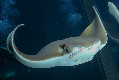 The Giant Ocean Tank features a coral reef and hundreds of Caribbean reef animals, including sea turtles, cownose rays, eels, and fishes.
